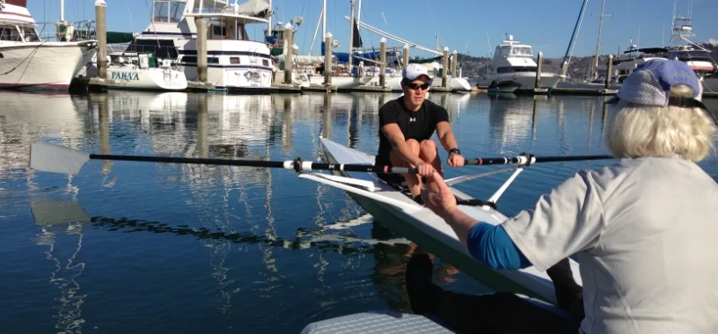 However, the gold standard for our training is on-the-water rowing in our actual ocean rowing boat, which is still in a shipping container. The second best option is an open-water rowing boat with a sliding seat (and fixed riggers) and oars that can be feathered. Luckily, we have access to a few rowing boats in Sausalito by the San Francisco Bay.